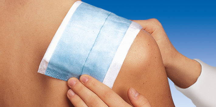 * در زمان استفاده، قسمت سفید رنگ روی زخم و قسمت آبی رنگ بیرون قرار میگیرد.